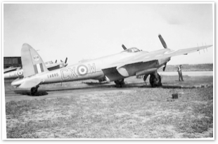 I arrived at Wahn by troop train on 2nd July 1948, and on reporting to 14 Squadron was greeted with astonishment. They claimed never to have seen a Plt Off before! Certainly there were one or two Fg Offs, but the rest were either Flt Lts or NCOs. Many were seasoned wartime Mosquito aircrew and quite a few had been regulars before the war, having started on Fairey Battles or Blenheims. I do not wish to imply that I was made unwelcome by these veterans; the comradeship on the Squadron was fine but there was a difference in attitude between the older members and the new boys like myself and other later arrivals. We, having been trained in peacetime, thought it routine to practise single-engined landings, or dive the aircraft to its maximum permissible speed. The older hands took the view that God had not made twin-engined Mosquitoes to be flown on one engine, except in the event of a real engine failure. Likewise, when I practised high speed dives there were dark comments about old wooden aircraft with glued on joints not being meant for that sort of thing. Perhaps they were right after all: the only landing accident during my 2? years on the squadron was when a young NCO pilot (flying my aircraft VP202 or CX-B) approached too low and slow on a practice single-engine landing and wrote the aircraft off. Again the smile was quickly wiped off my face during a high speed dive when the escape hatch on top of the canopy blew off and struck the tail, luckily only knocking a few holes in it!