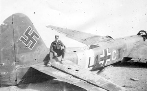 A few days later we were happy to be back on our Med safari. We were flying at sea-level close to Cape Corse at the tip of Corsica, when we saw the most enormous aircraft flying towards us. It was a six-engined Me 323. I knew it had two formidable cannons firing aft so I manoeuvred in front of the enemy aircraft and fired back at him. Soon three engines were out of action. The huge aircraft lumbered on towards the Corsican coast, where it crash- landed in a cloud of dust. Luckily for the crew, it didn't catch fire and no-one was injured as the gun crews and tractor drivers had all gone to the rear of the aeroplane. We did not shoot them up on the ground. I have been friends with the pilot of the Me323 for the last 21 years, but that is another story!
